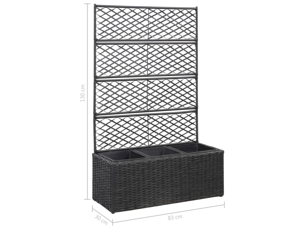 Marketos Vyvýšený záhon s treláží 3 květníky 83x30x130cm polyratan černý