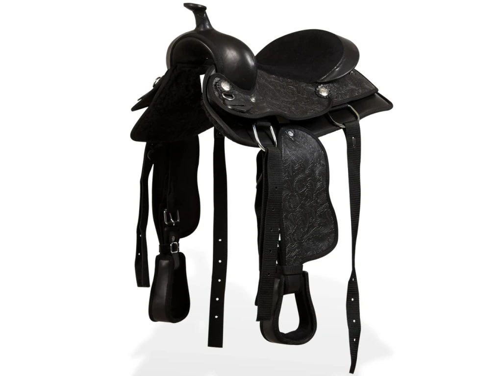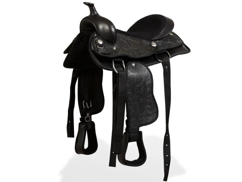 Sedlo ve westernovém stylu je dodáváno se sladěnou ohlávkou, poprsníkem a vůbec vším, co potřebujete, abyste mohli osedlat svého koně a jezdit na něm.