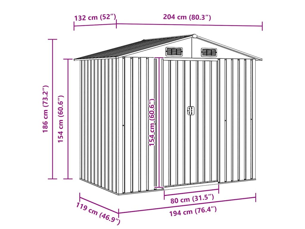 Tento zahradní domek na nářadí má 4 větrací otvory, 2 vepředu a 2 vzadu, které zajišťují vynikající cirkulaci vzduchu. Dvoukřídlé posuvné dveře v čelní stěně umožňují snadné vcházení a vycházení.