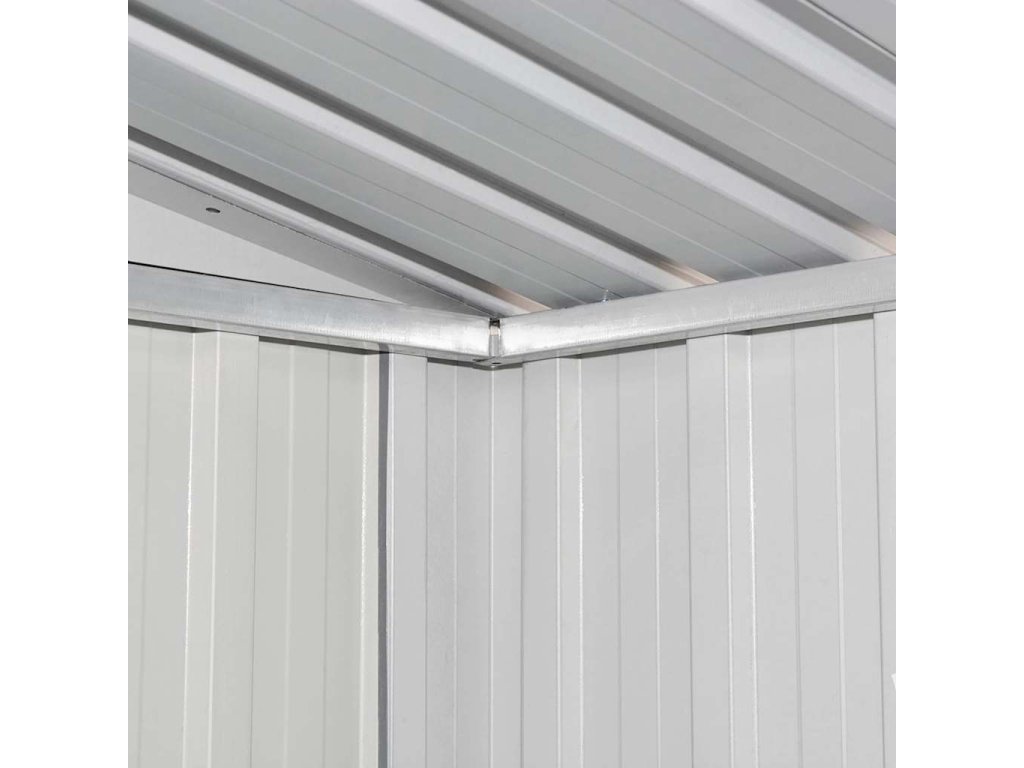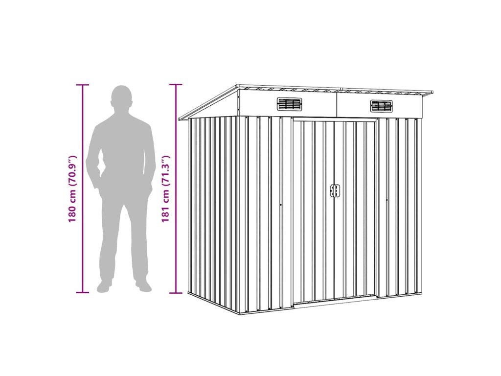 Tento skladovací domek má v přední části 2 větrací otvory, které zajišťují vynikající větrání. Dvojité posuvné dveře v přední části umožňují snadný vstup a výstup. Pozinkovaná ocelová konstrukce spolu s pozinkovaným povrchem ji činí odolnou a pevnou, takže nebude korodovat ani být ovlivněna extrémním počasím.