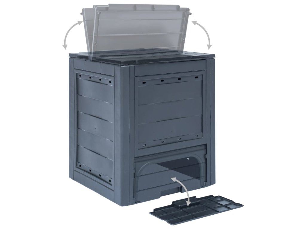 Koše na kompost jsou vyrobené z plastu, skvěle tudíž odolávají UV záření i nepříznivým vlivům počasí. Mají lehkou konstrukci a vypadají velmi úhledně. Disponují rozděleným víkem pro optimální zavlažování a větrání. V bočních stěnách se nachází větrací otvory, s jejichž pomocí dokáže kompostér vytvořit ideální podmínky ke kompostování. Tyto čtvercové kompostéry, které přirozeně zapadnou do každé zahrady, vám usnadní recyklaci vašeho organického odpadu.