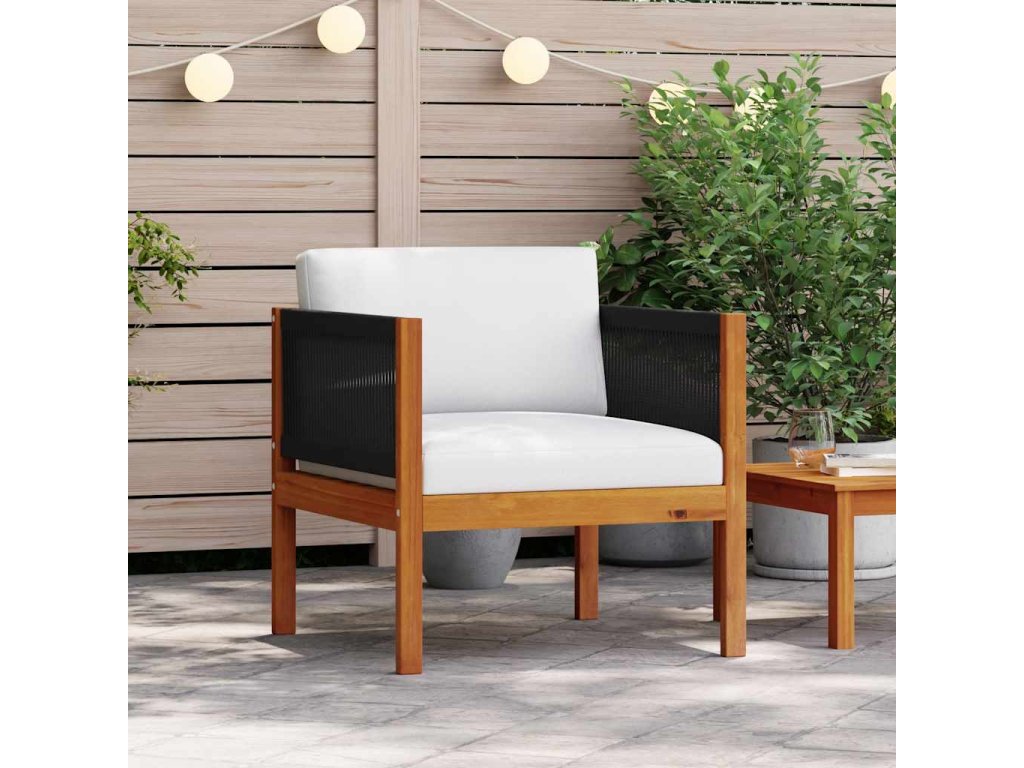 Křeslo je vyrobeno z masivního akáciového dřeva, vyznačuje se tedy extrémní odolností. Se svým nevšedním provázkovým designem zaujme každého na první pohled. Křeslo je navíc také lehké, takže se dá snadno přesouvat z místa na místo. Silně polstrované podušky zaručují pohodlné sezení.