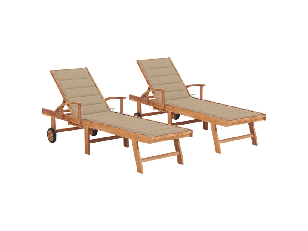 Marketos Zahradní lehátka 2 ks s béžovou poduškou masivní teak