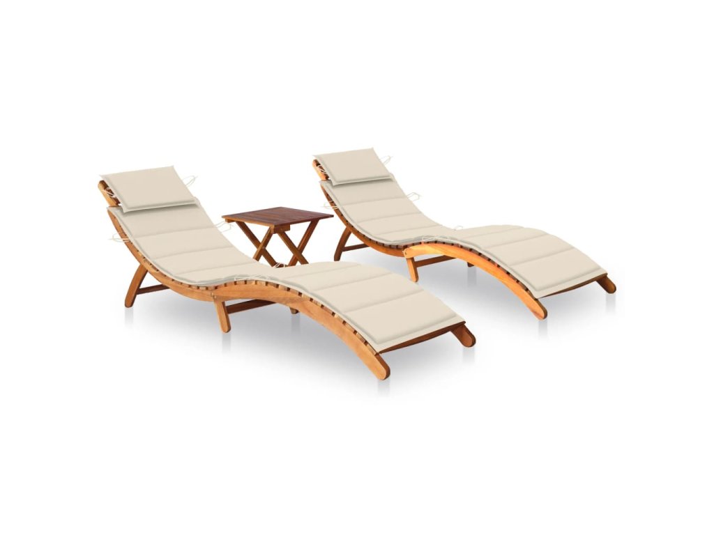 Marketos Zahradní lehátka 2 ks se stolkem a poduškami masivní akácie