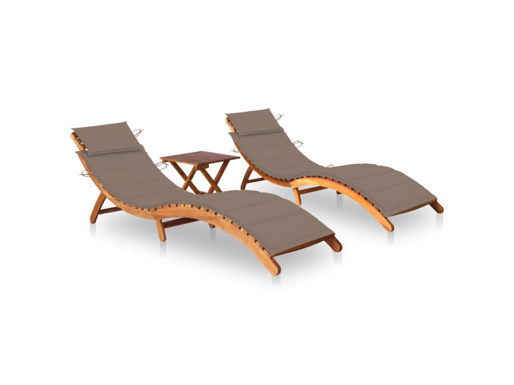 Marketos Zahradní lehátka 2 ks se stolkem a poduškami masivní akácie