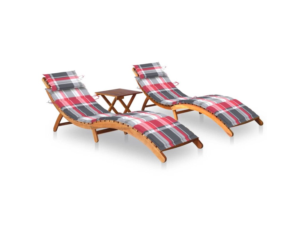 Marketos Zahradní lehátka 2 ks se stolkem a poduškami masivní akácie