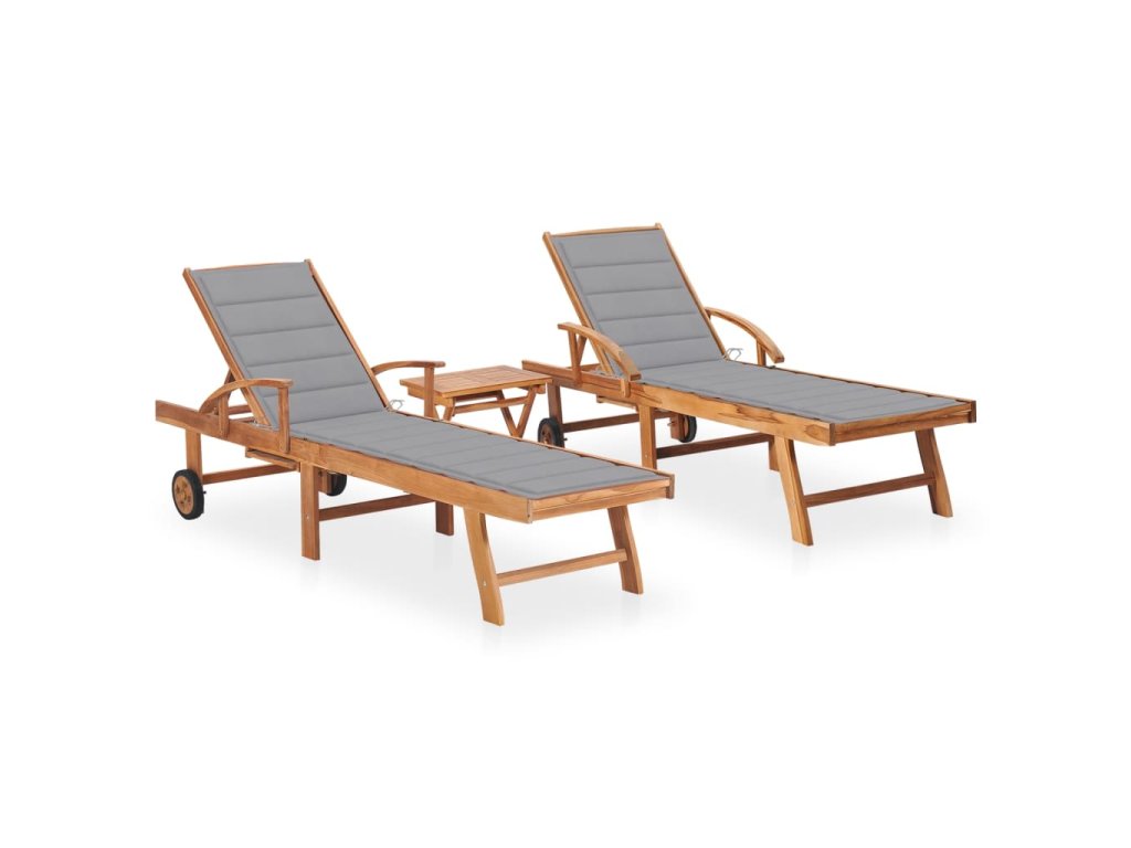 Marketos Zahradní lehátka 2 ks se stolkem a poduškou masivní teak