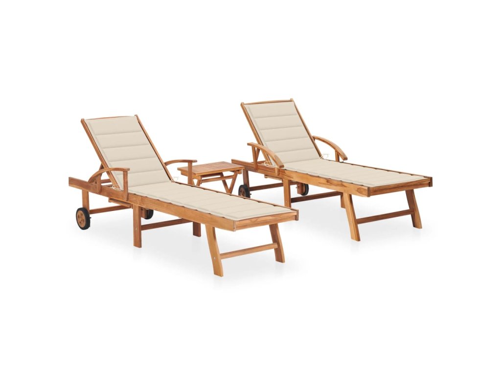 Marketos Zahradní lehátka 2 ks se stolkem a poduškou masivní teak