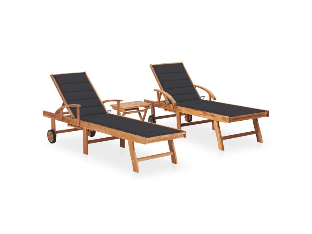 Marketos Zahradní lehátka 2 ks se stolkem a poduškou masivní teak