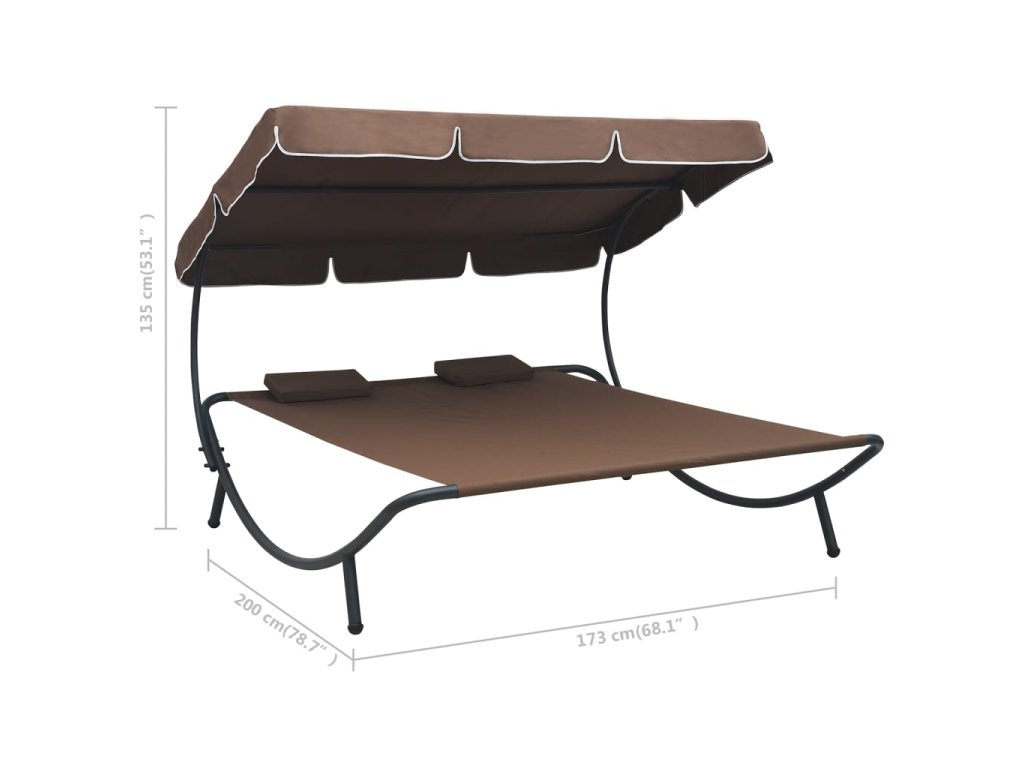 Marketos Zahradní lehátko s baldachýnem a polštářky hnědé