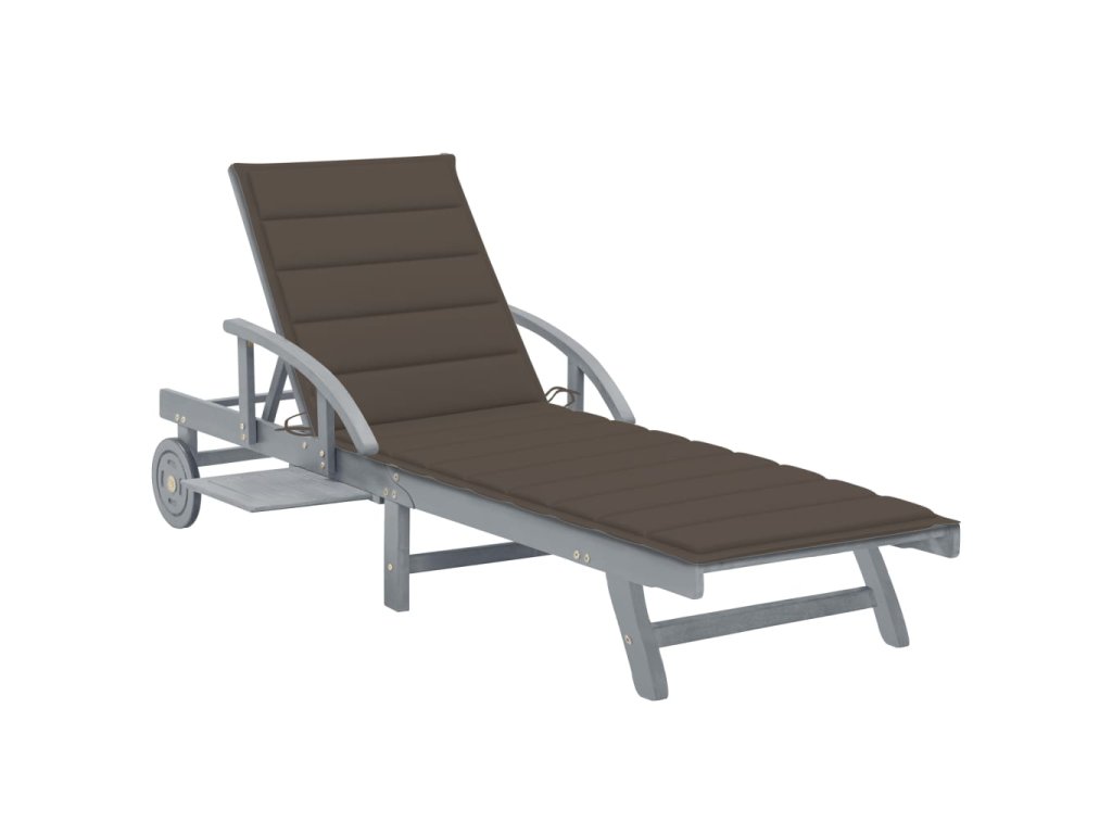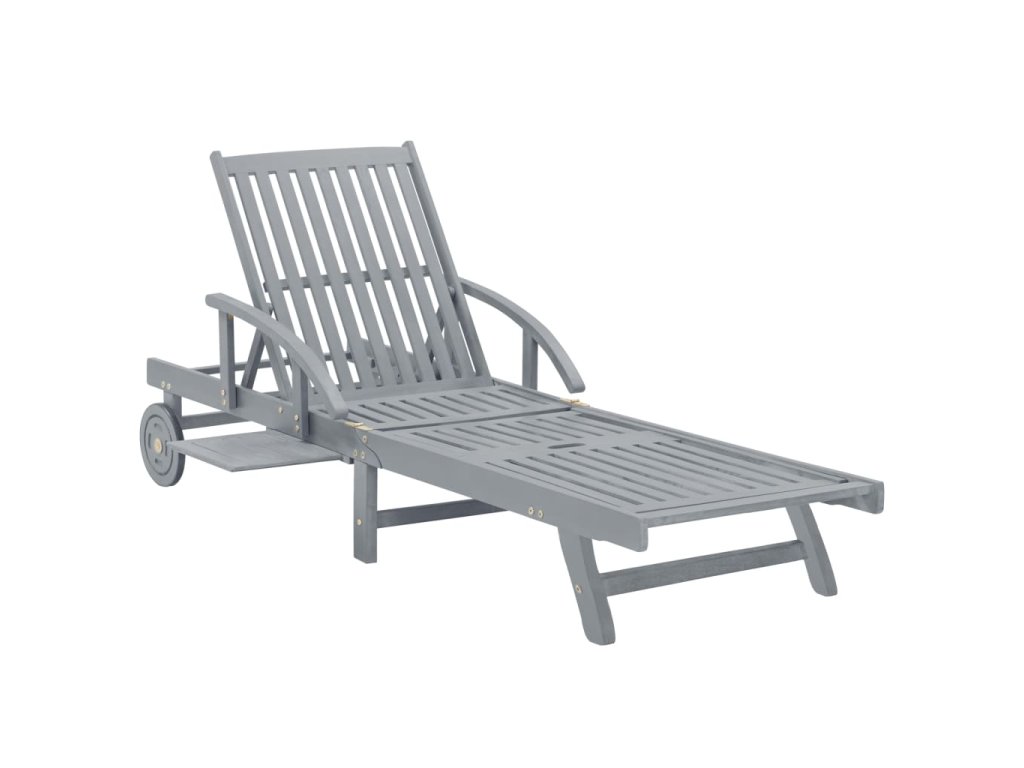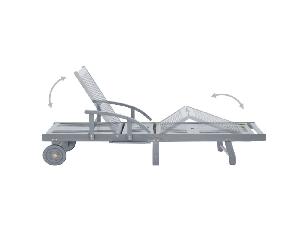 Toto zahradní lehátko je vyrobené z masivního akáciového dřeva s šedou povrchovou úpravou, takže je robustní a stabilní. Opěrky zad a nohou jsou polohovatelné a můžete je snadno nastavit do požadované polohy. Toto zahradní lehátko se 2 kolečky snadno přemístíte, kamkoliv potřebujete. Lehátko je vybavené praktickým výsuvným stolkem, na který můžete položit telefon, sluneční brýle, pití a další drobné předměty. Polštářek přispívá k optimálnímu komfortu během vaší relaxace. Každá poduška je vybavená dvěma páry šňůrek, abyste ji mohli pevně zafixovat k lehátku.