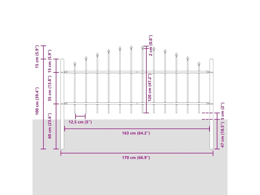 Plot je vyroben z vysoce odolné oceli, je tudíž mimořádně stabilní, pevný a odolný. Svislé pruty jsou nahoře zakončené hroty a silné vodorovné tyče slouží ke zpevnění rámu, aby vám oplocení poskytlo vysokou úroveň bezpečí a soukromí. Sestavení plotu je jednoduché.