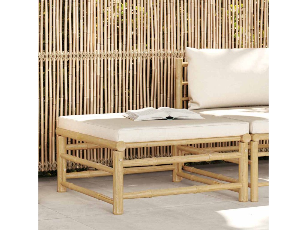 Marketos Zahradní podnožka s krémově bílou poduškou bambus