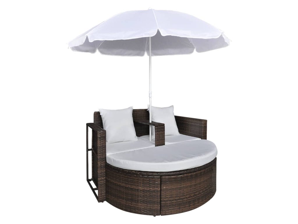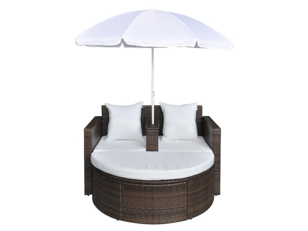 Marketos Zahradní postel se slunečníkem hnědá polyratan