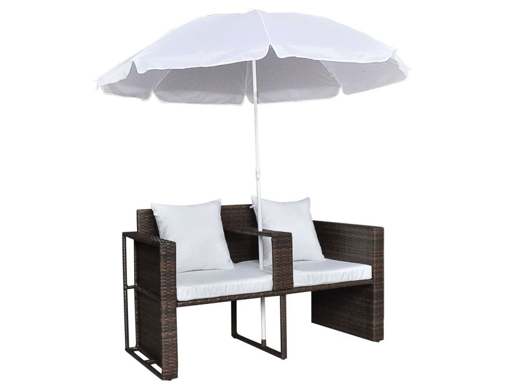 - Hnědá ratanová zahradní sedací souprava + bílý slunečník