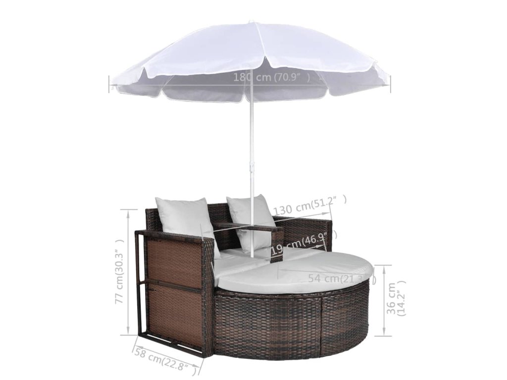 Tento ratanový lehátkový set se slunečníkem je po estetické i ergonomické stránce nepřehlédnutelnou deklarací stylu a na vaší zahradě či v jiném venkovním prostoru zaujme na první pohled.