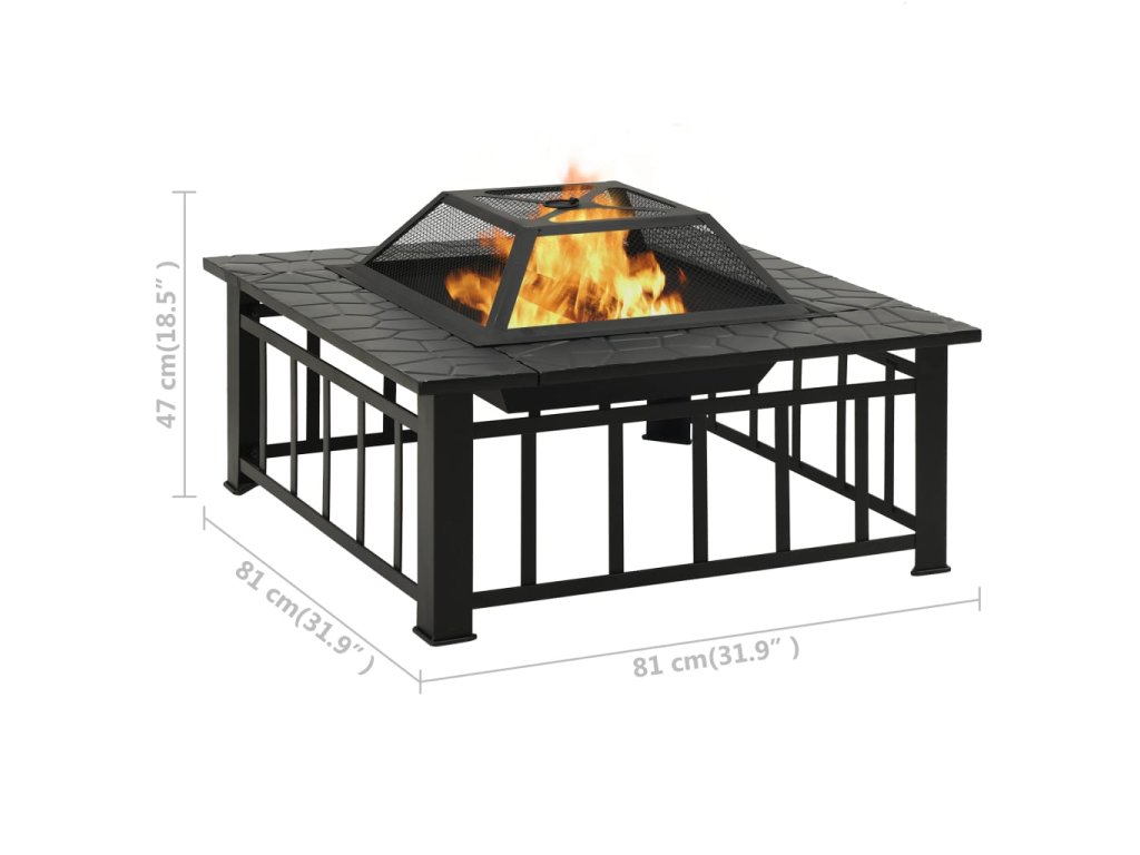 Marketos Zahradní přenosné ohniště s pohrabáčem 81x81x47 cm XXL ocel