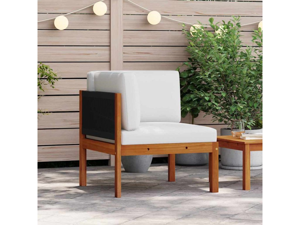 Vyrobená z masivního akáciového dřeva s olejovou úpravou, tato pohovka je odolná a stabilní. Díky propracovanému provázkovému opěradlu dodává venkovní posezení sofistikovaný nádech každému venkovnímu prostoru. Silně polstrované a odnímatelné polštáře sedáku a opěradla přispívají k maximálnímu pohodlí. Díky modulárnímu designu je flexibilní a snadno se přemisťuje do jakéhokoli prostředí. Můžete ji kombinovat s dalšími modulárními segmenty a vytvořit si vlastní zahradní posezení dle vašeho vkusu!