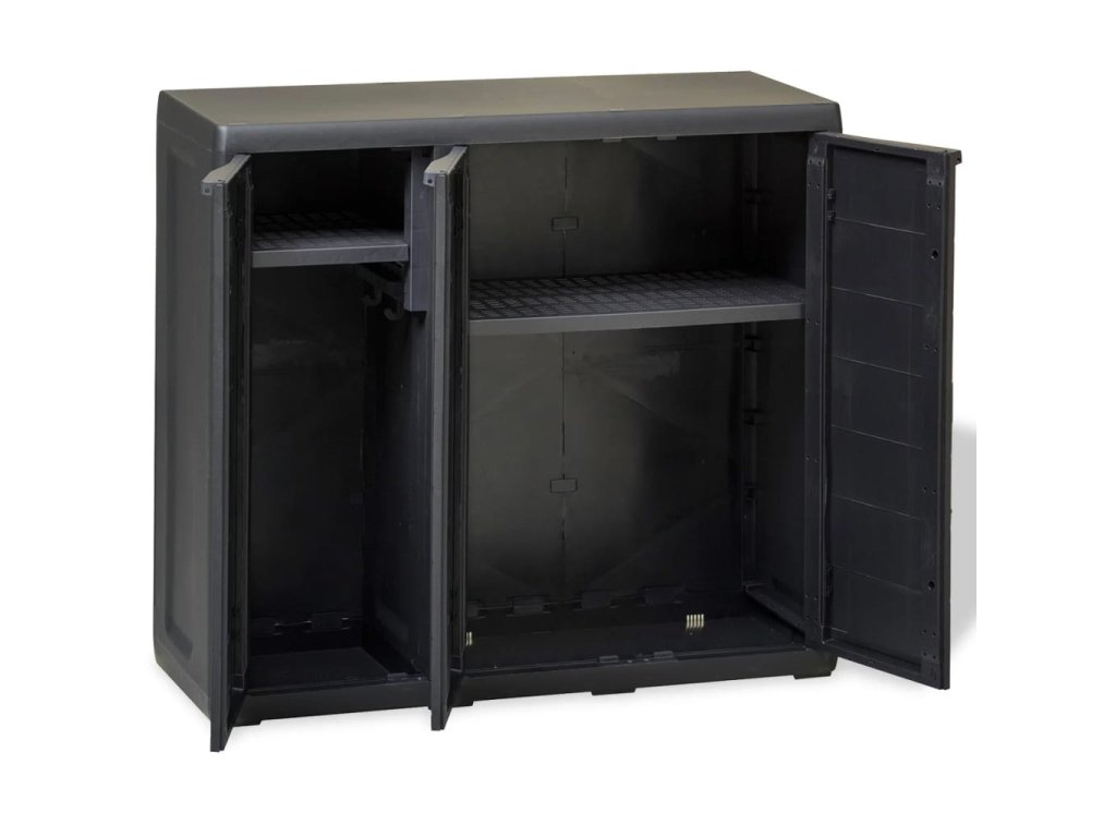 Naše vysoce kvalitní zahradní úložná skříň se výborně hodí k uspořádání a skladování vašich domácích potřeb, nářadí a dalších věcí. Díky svému nadčasovému designu se skvěle kombinuje s ostatním nábytkem.