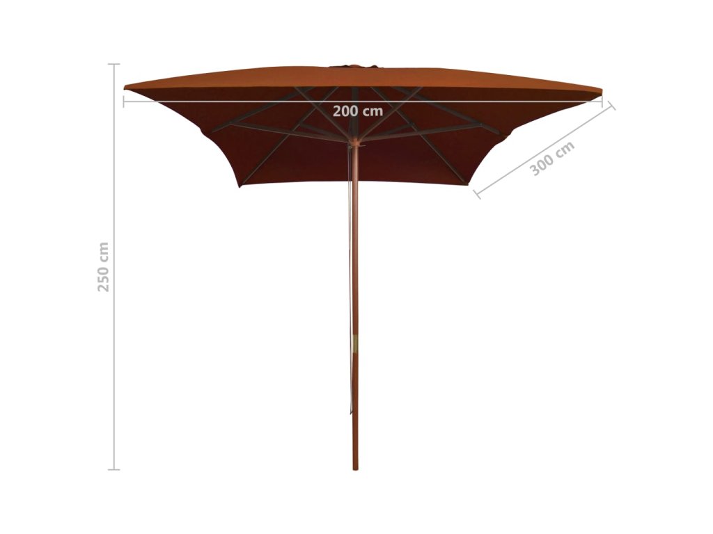 Marketos Zahradní slunečník s dřevěnou tyčí terakotový 200 x 300 cm