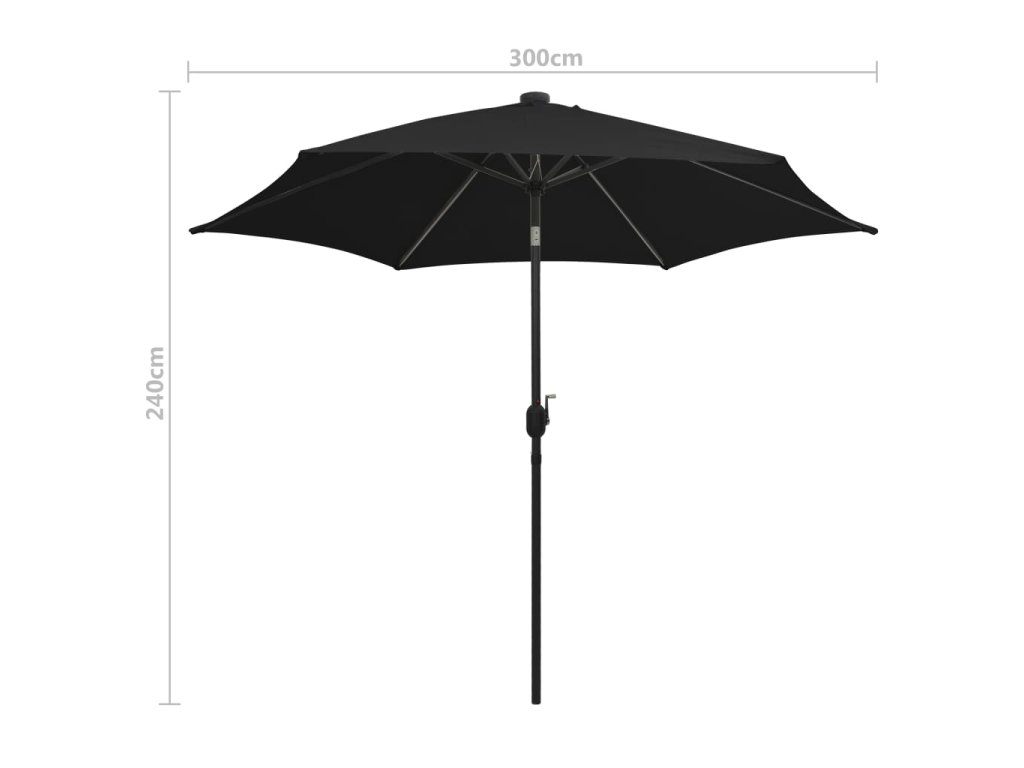 Marketos Zahradní slunečník s LED a hliníkovou tyčí 300 cm černý