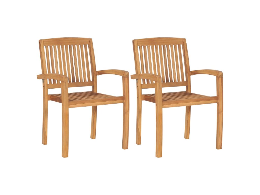 Sada zahradních židlí má laťková opěradla a mírně zaoblené područky, aby se vám na nich lépe sedělo. Jednotlivé židle se na sebe dají stohovat, čímž vám pomohou ušetřit místo, když je zrovna nepoužíváte. Přibalené podušky jsou nejen praktické, ale plní také dekorativní funkci.