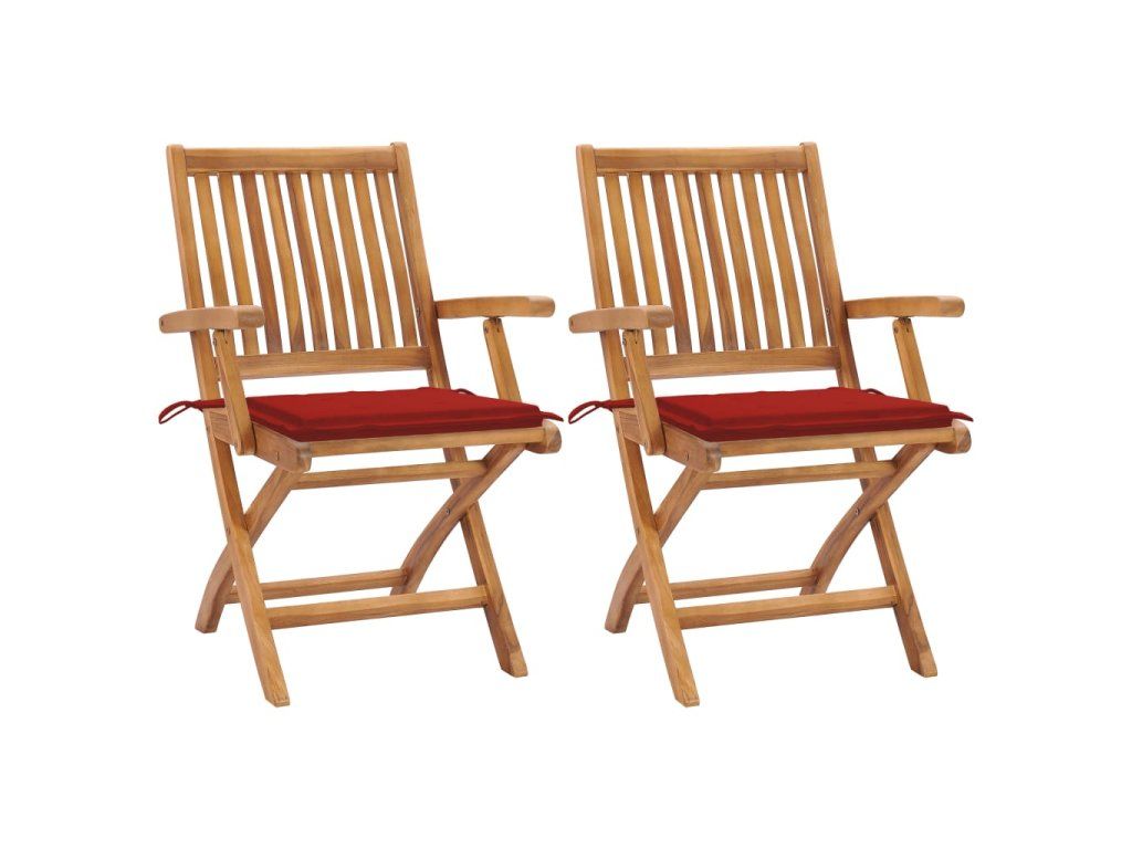 Marketos Zahradní židle 2 ks s červenými poduškami masivní teak