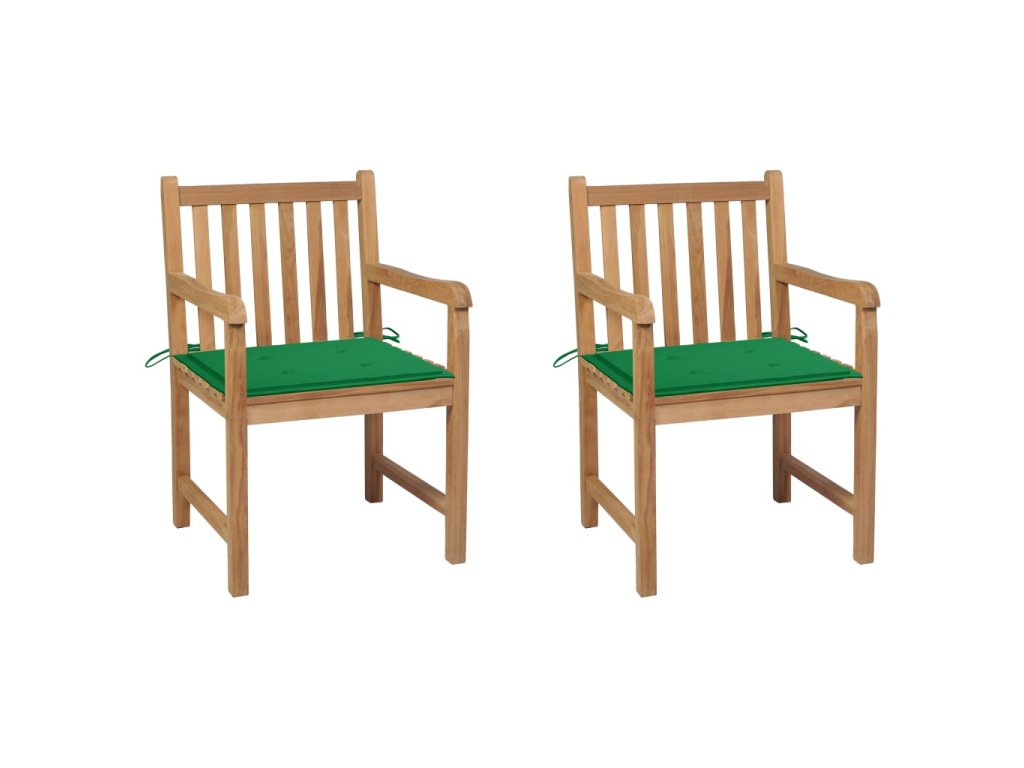 Marketos Zahradní židle 2 ks zelené podušky masivní teakové dřevo