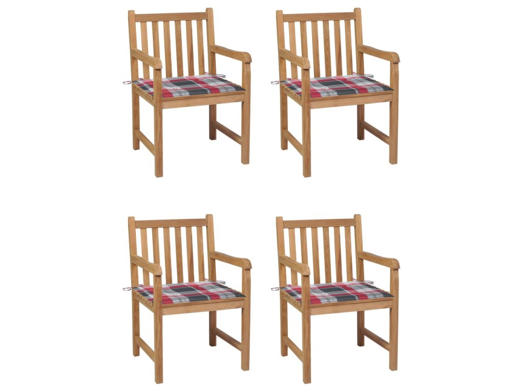 Marketos Zahradní židle 4 ks červené kárované podušky masivní teak