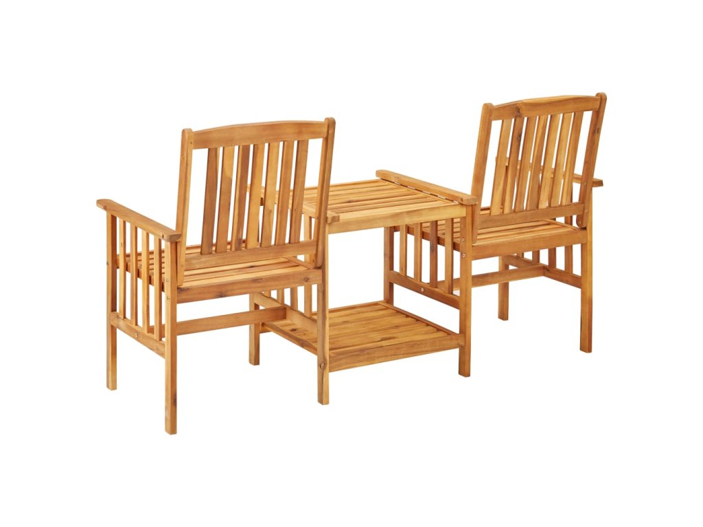 Stůl i židle jsou zhotovené z masivního akáciového dřeva s olejovou povrchovou úpravou, takže jsou mimořádně stabilní a robustní. Odolná stolní deska a spodní polička se skvěle hodí pro odkládání hrníčků, knih a dalších menších předmětů. Opěradla a područky křesílek vám pak zajistí příjemné posezení a relaxaci. Vzhledem k jeho olejovanému povrchu se nábytek navíc snadno čistí vlhkým hadříkem. Podušky dodávají větší pohodlí. Každá poduška je opatřená dvěma páry šňůrek pro pevné uchycení.