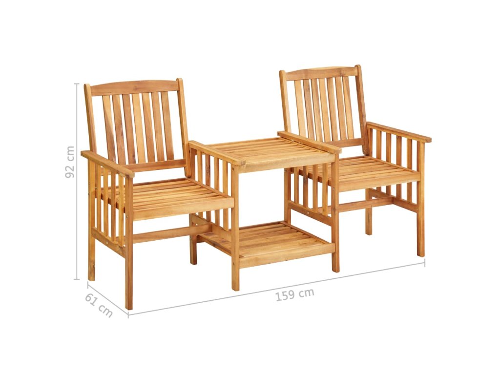 Stůl i židle jsou zhotovené z masivního akáciového dřeva s olejovou povrchovou úpravou, takže jsou mimořádně stabilní a robustní. Odolná stolní deska a spodní polička se skvěle hodí pro odkládání hrníčků, knih a dalších menších předmětů. Opěradla a područky křesílek vám pak zajistí příjemné posezení a relaxaci. Vzhledem k jeho olejovanému povrchu se nábytek navíc snadno čistí vlhkým hadříkem. Podušky dodávají větší pohodlí. Každá poduška je opatřená dvěma páry šňůrek pro pevné uchycení.