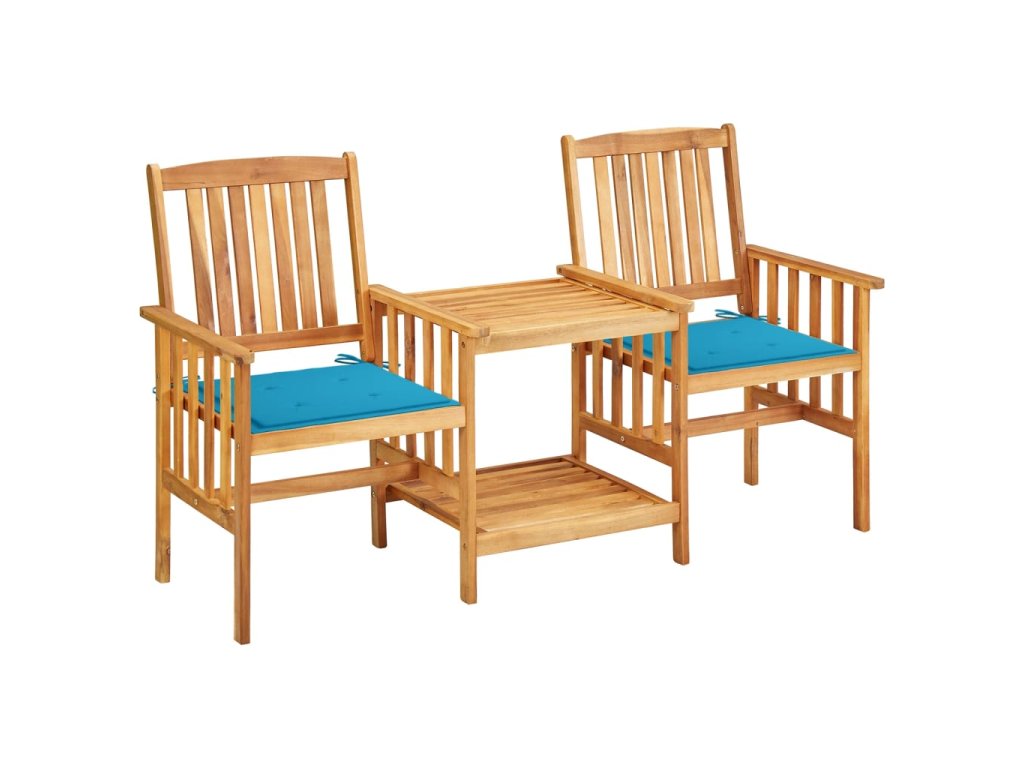 Marketos Zahradní židle s čajovým stolkem a poduškami 2ks akáciové dřevo