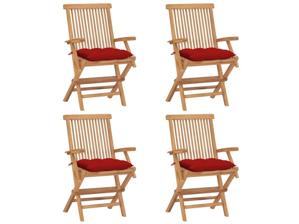 Marketos Zahradní židle s červenými poduškami 4 ks masivní teak