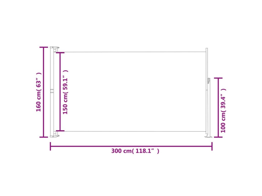 Marketos Zatahovací boční markýza 160 x 300 cm šedá