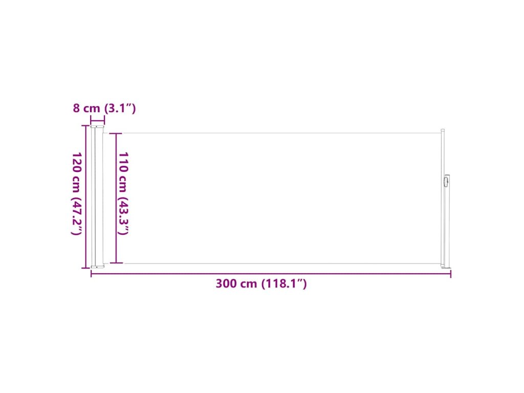 Jednoduchý a přitom stylový design této zástěny se bude krásně vyjímat na každé zahradě, terase, balkonu apod. Zatahovací boční markýza je vybavena funkcí automatického stažení a můžete ji roztáhnout do šířky až 300 cm. Je vyrobena z polyesteru, který chrání proti UV záření, je odolný vůči roztržení a voděodolný.