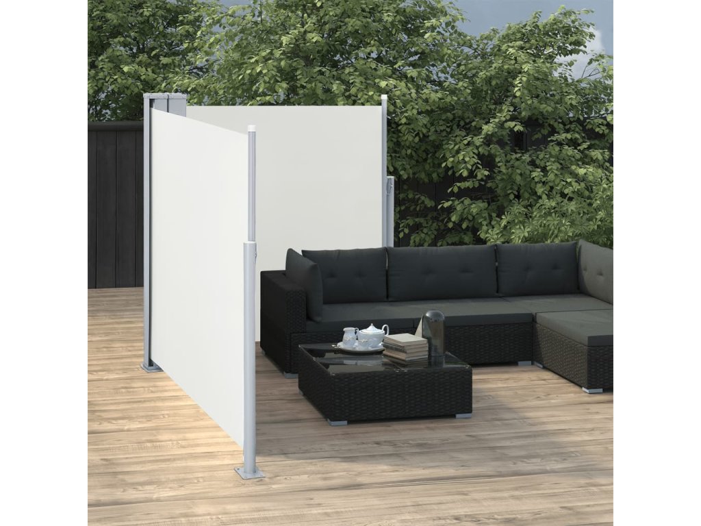 Jednoduchý a přitom stylový design této zástěny se bude krásně vyjímat na každé zahradě, terase, balkonu apod. Zatahovací boční markýza je vybavená funkcí automatického zatažení a můžete ji roztáhnout do šířky až 600 cm. Je vyrobená z polyesteru potaženého PU vrstvou, který chrání proti UV záření, netrhá se a je voděodolný.