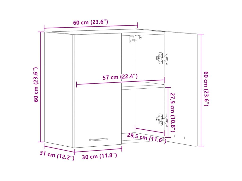 Marketos Závěsná skříňka "Lyon" bílá 60 x 31 x 60 cm, dřevěné podlahy