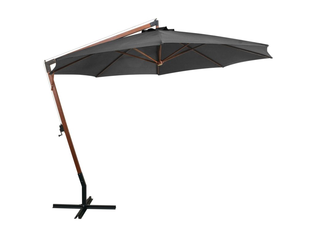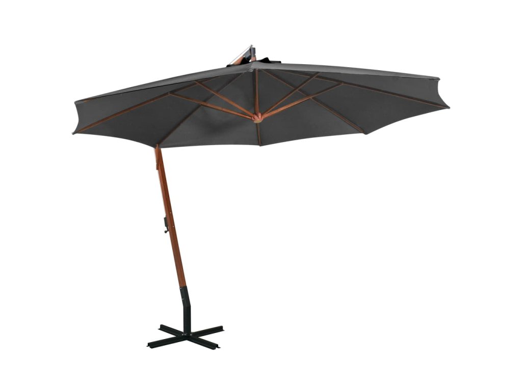 Marketos Závěsný zahradní slunečník s tyčí antracit 3,5x2,9m masiv jedle
