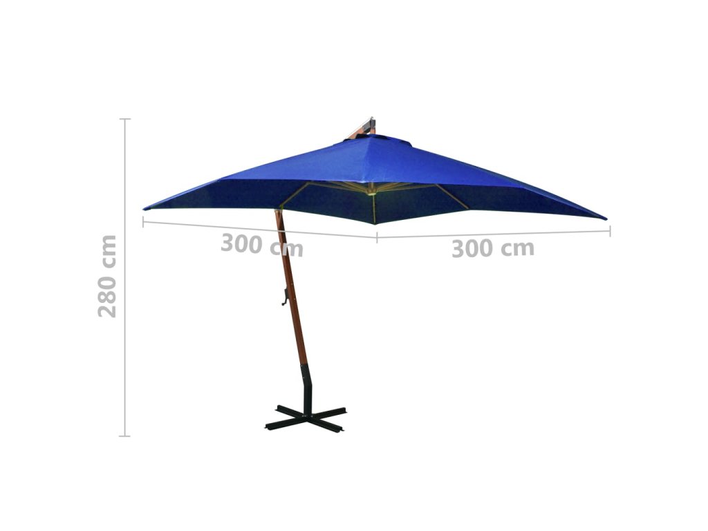 Marketos Závěsný zahradní slunečník s tyčí azurový 3 x 3 m masivní jedle
