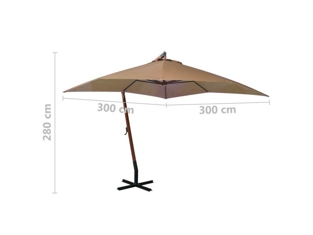 Marketos Závěsný zahradní slunečník s tyčí taupe 3 x 3 m masivní jedle