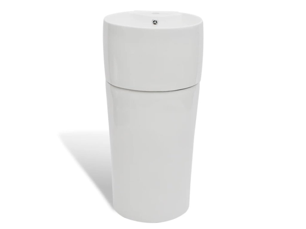 Stojací umyvadlo keramické kulaté bílé, otvor na baterií, přepad
