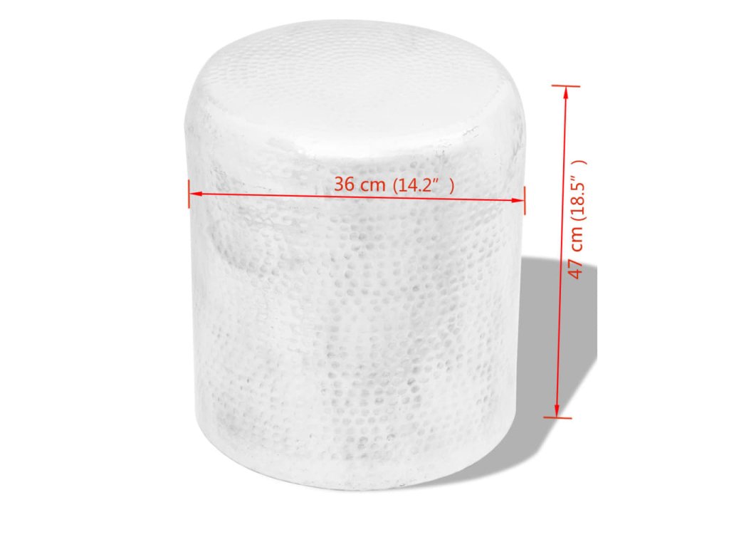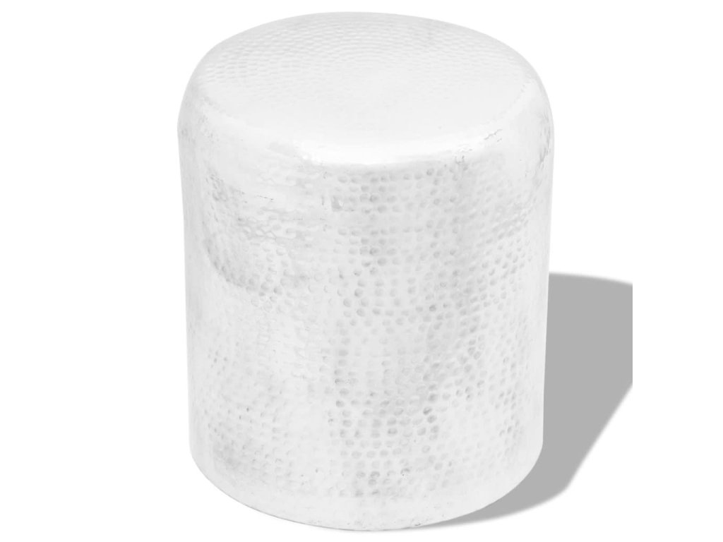 Tato stolička / odkládací stolek je vyrobena z vysoce kvalitního hliníku s leštěným povrchem, takže je extrémně odolná. Atraktivní tepaná povrchová úprava stoličce dodává taktilní texturu.