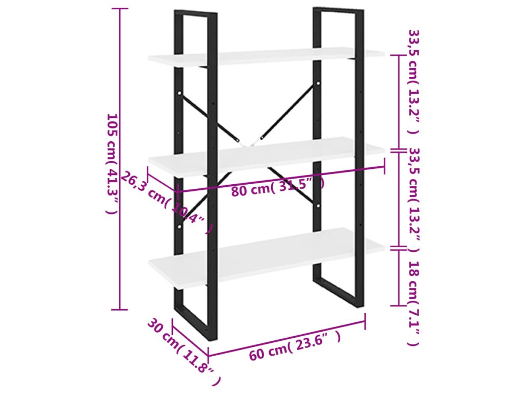 Knihovna je vyrobená z kvalitní dřevotřísky a kovového rámu, takže je pevná, odolná a vydrží vám sloužit dlouhá léta. Najdete v ní 3 police, které vám nabídnou spoustu prostoru k uložení knih, časopisů a různých dekorací. K čištění regálu vám postačí navlhčený hadřík.