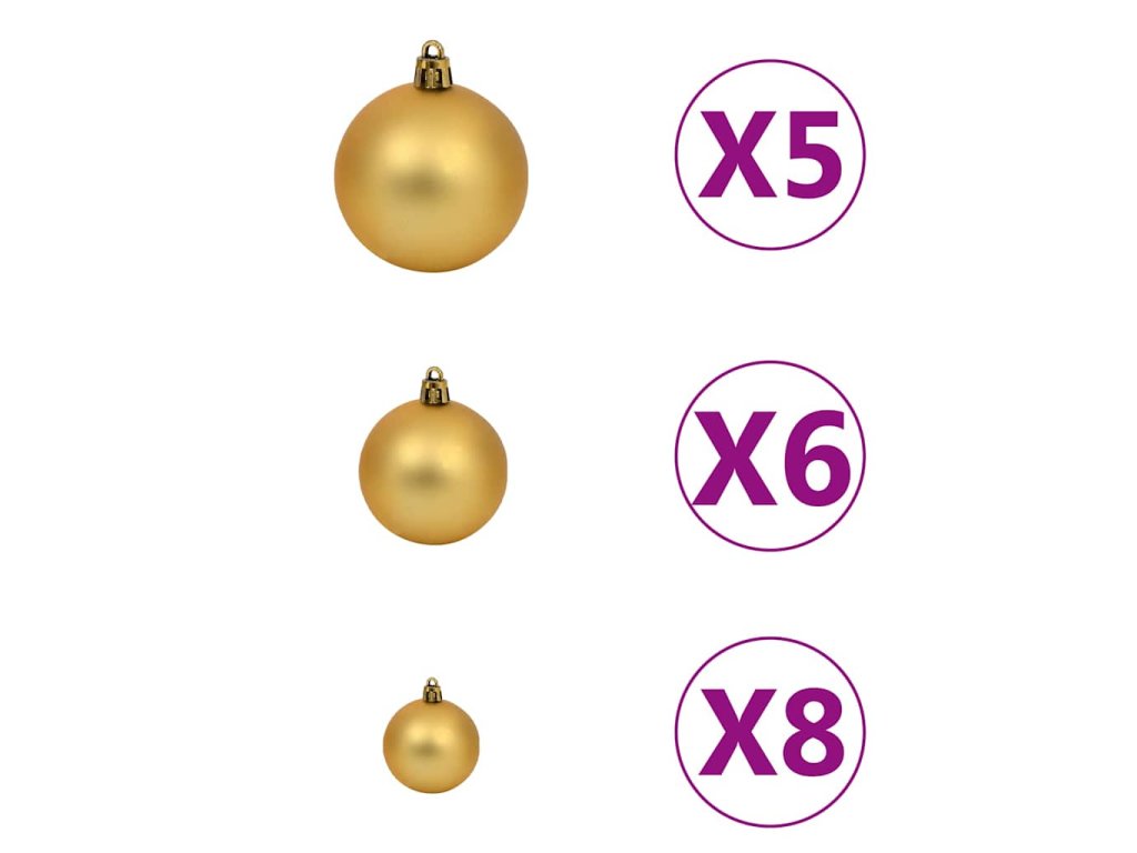 - Barva koulí: lesklá zlatá, matná zlatá a bronzová