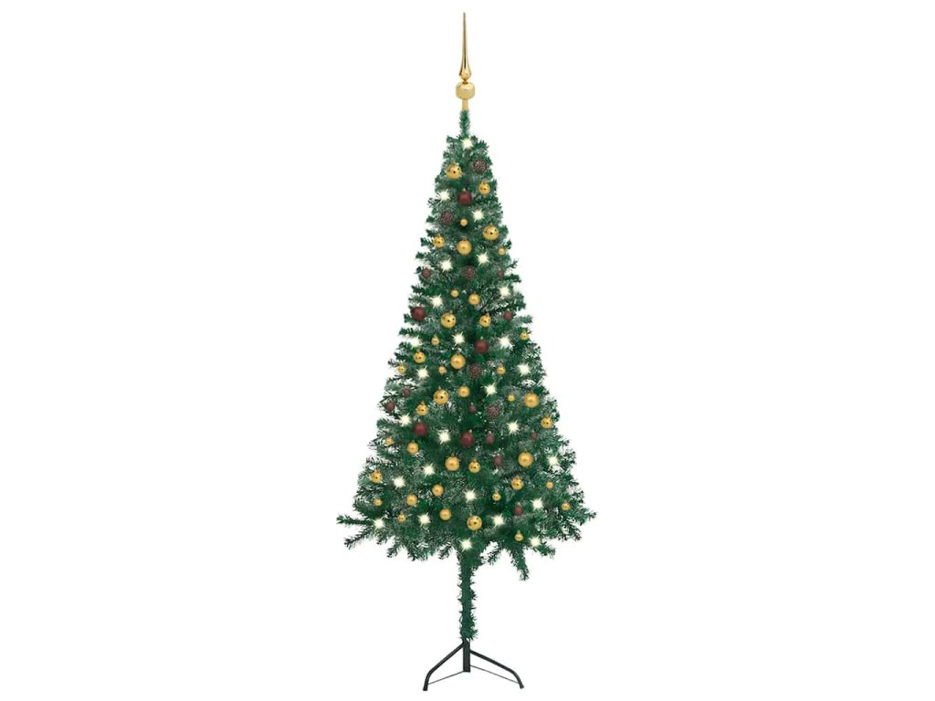 vidaXL Rohový umělý vánoční stromek LED a sada koulí zelený 240 cm PVC