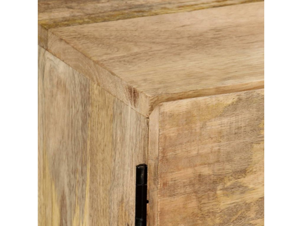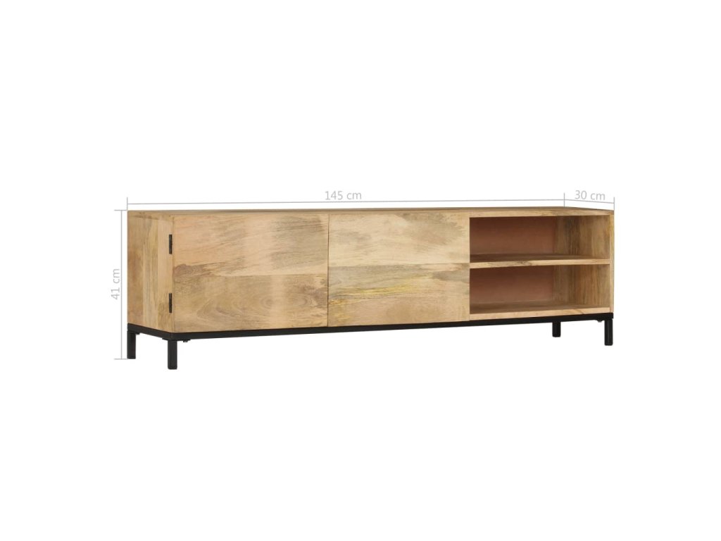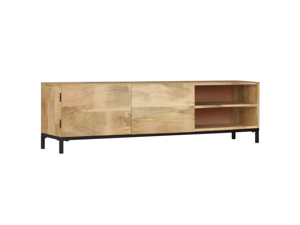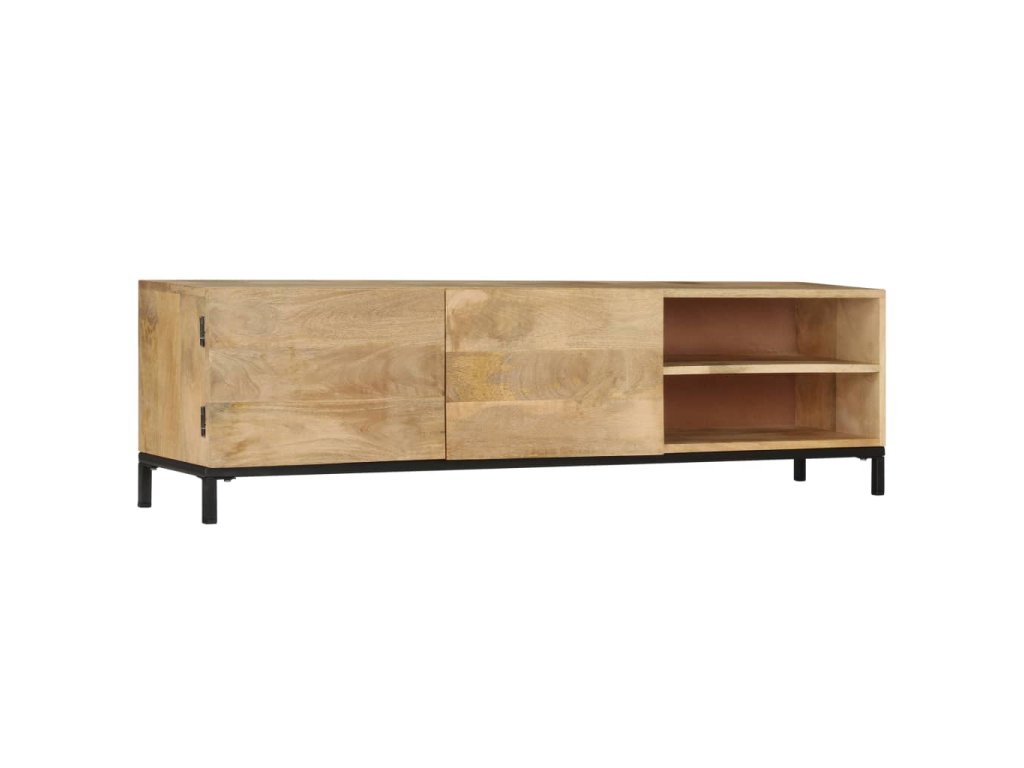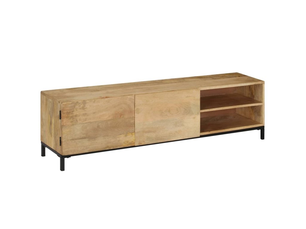 TV stolek je vyroben z masivního mangovníku, což je tvrdé dřevo s hustou texturou. Hrubé mangovníkové dřevo je nejen schopné unést značnou váhu, ale výborně také odolává opotřebení a působení času. Skříňka s překrásným designem je proto stabilní, odolná a příjemná na pohled. Precizní řemeslné zpracování je navíc zárukou toho, že byla každé fázi výrobního procesu věnována mimořádná péče, ať už šlo o leštění anebo lakování. Televizní stolek disponuje 1 skříňkou se 2 dvířky a 2 přihrádkami, poskytne vám tedy spoustu místa, kam si můžete uložit svá multimediální zařízení, knížky a všelijaké další věci.