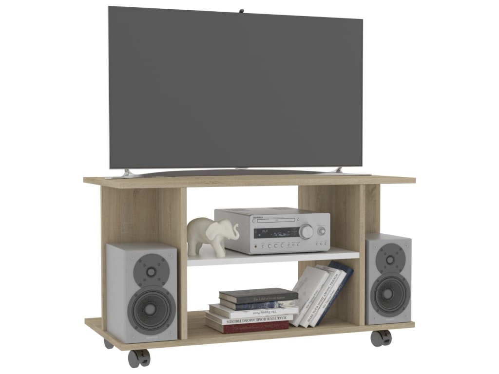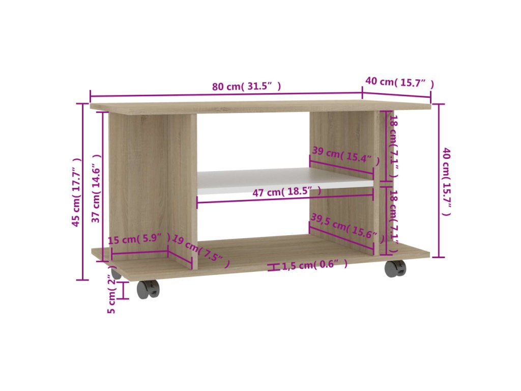 vidaXL TV stolek s kolečky bílý a dub sonoma 80x40x40 cm dřevotříska
