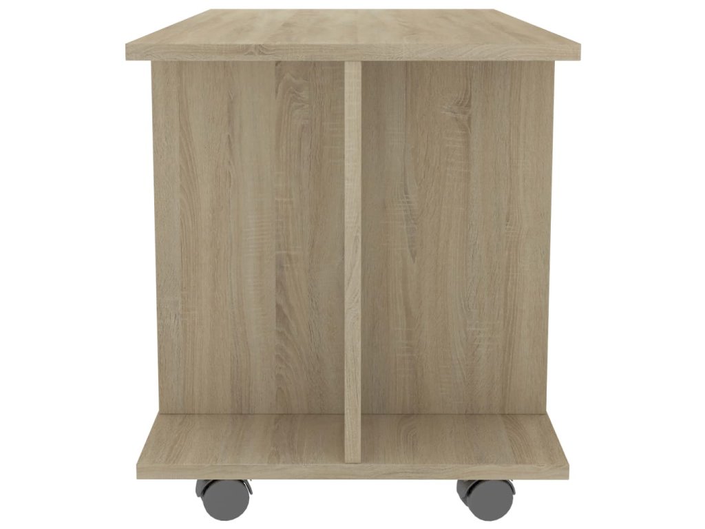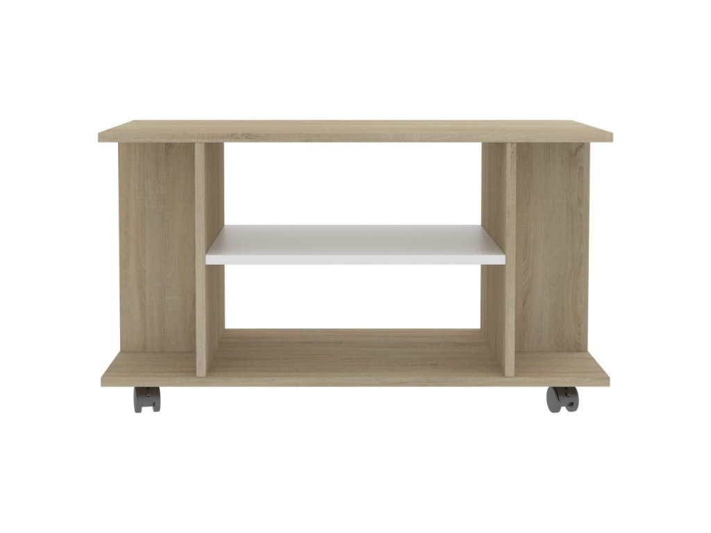 Televizní skříňka je vyrobená z dřevotřísky, a je tudíž robustní, odolná a má dlouhou provozní životnost. Nachází se v ní 4 otevřené police, které vám nabídnou spoustu úložného prostoru pro přehlednou organizaci časopisů, knih, DVD přehrávačů, přijímačů, disků a multimediálních zařízení, to vše navíc na dosah ruky. Skříňku také můžete snadno přesouvat po 4 pojezdových kolečkách anebo ji naopak pevně zakotvit na místě 2 uzamykatelnými kolečky.