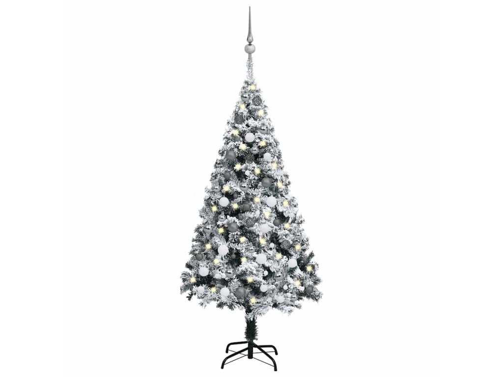 vidaXL Umělý vánoční stromek s LED a sadou koulí zelený 150 cm PVC