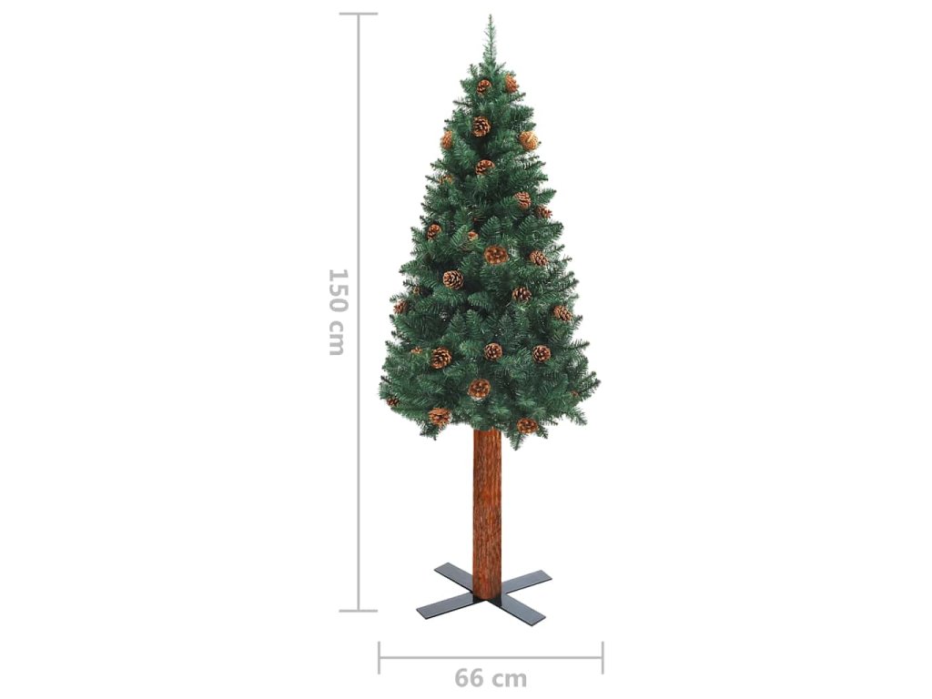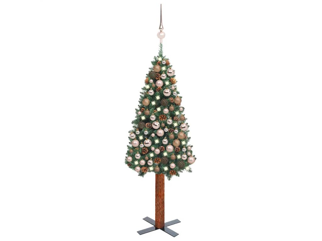vidaXL Úzký vánoční stromek s LED a sadou koulí zelený 150 cm PVC